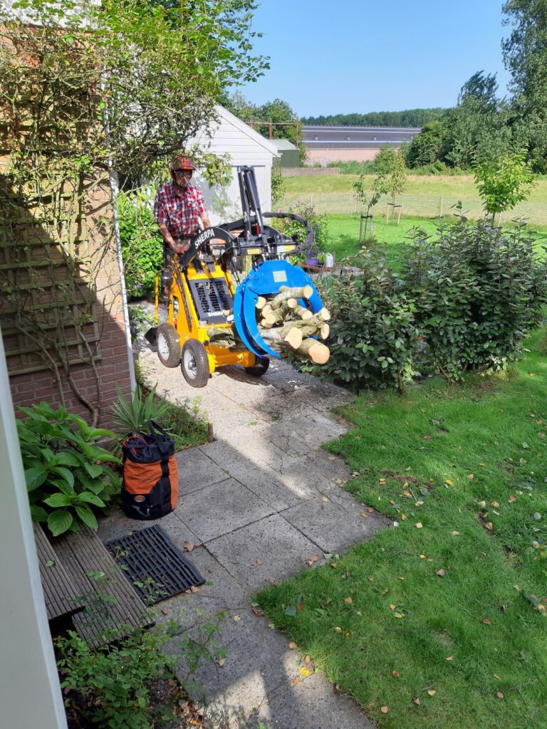 Dan is deze kar een enorme uitkomst. Het kan grote bossen takken en dikke stammen moeiteloos en snel verplaatsen, langs de weg of in de aanhanger leggen.