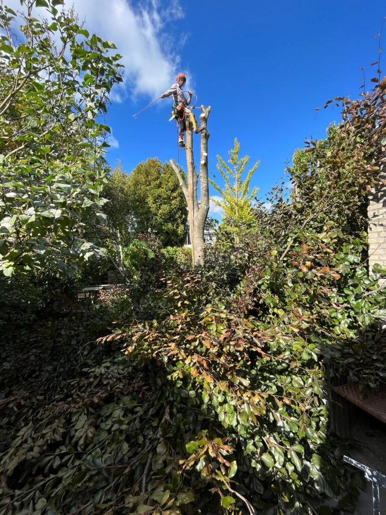 Een prachtige dag in oktober. Lekker zonnetje. Een grote beukenboom in een kleine achtertuin in Kralingen in Rotterdam. De boom gaf overlast, nam alle licht weg, groeide boven de buurtuinen. En deze beuk zou zeker nog veel groter groeien.