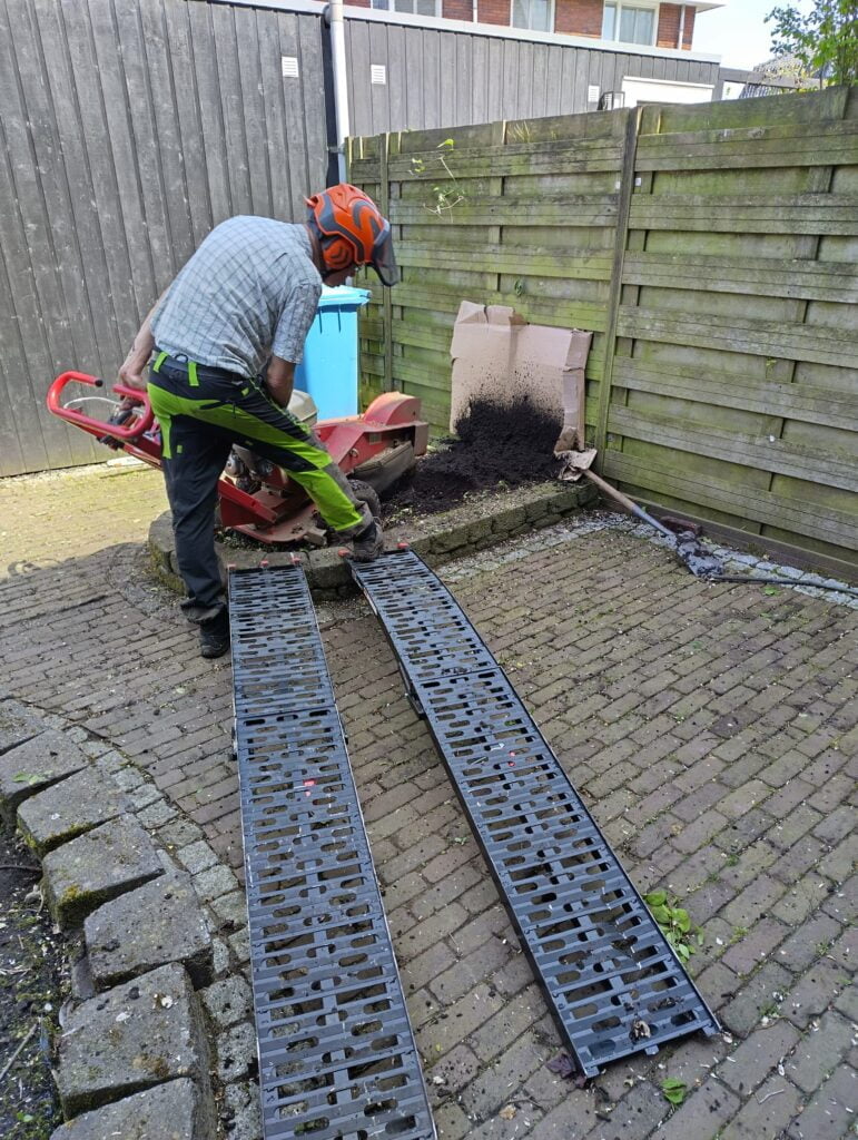 Boomstronken frezen voor terras in Lelystad